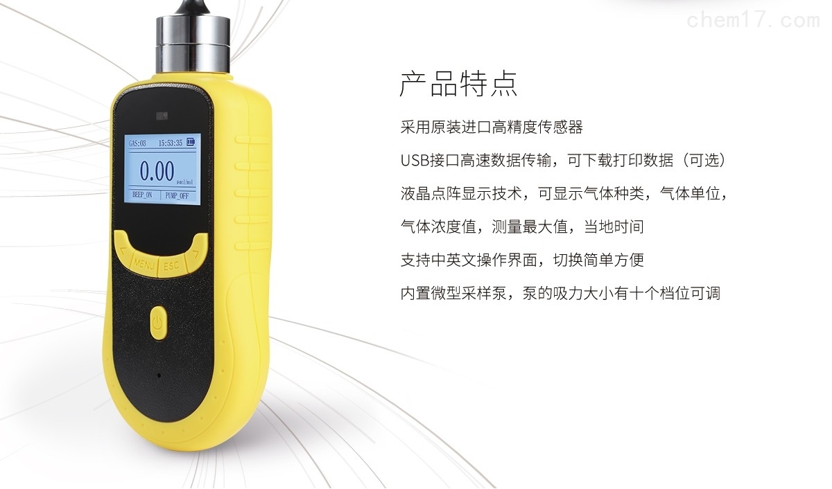| 采樣方式: | 泵吸式,流量可達1L/min,泵的吸力大小有十個檔位可調 | |